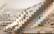 The modern living areas are thoughtfully designed with ample natural light, lofty ceilings, and stylish decor. Each condo boasts a spacious layout with contemporary furniture, wooden flooring, and large windows. Residents will appreciate the indoor plants, pendant lighting, and a pool table in the communal living room.