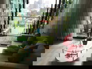 Experience luxurious living in this fully furnished, 2-bedroom, 2-bathroom condo, perched on the 27th floor of the prestigious Quinn Ratchada 17 in Din Daeng, Bangkok. This spacious 70 sqm unit boasts of a modern open-plan design, seamlessly integrating the living room and kitchen, creating an inviting atmosphere filled with natural light from large windows.