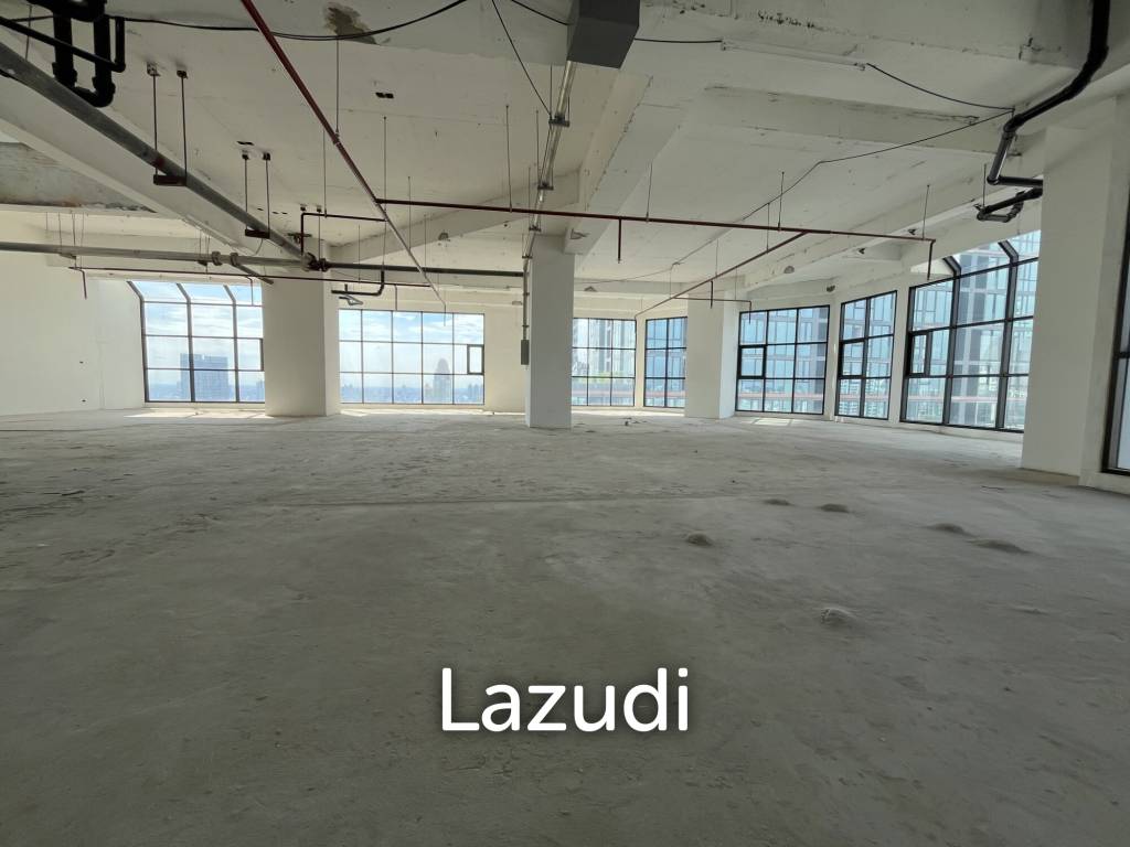 This property features an open floor plan designed to maximize natural light, thanks to large floor-to-ceiling windows offering breathtaking panoramic views of Bangkoks cityscapes. The unfinished space is a blank canvas for customization, featuring exposed ceilings and pipes for an industrial aesthetic. Concrete flooring complements the high ceilings, creating a spacious and airy environment.