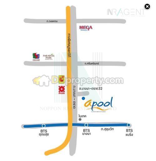For Rent Condo A POOL BANGNA Building B, Floor 6,1 bed room, Room size 26.50 sqm
