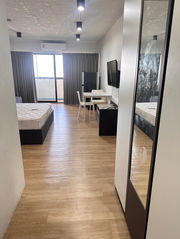 40 sqm. large corner room with balcony, privacy & nice city view , 400 meters from MRT Cultural Center, near Big C Ratchada and The Street, Thai Life Insurance Building, The Esplanade and the night market. Fully furnished, 3 elevators, key card access, CCTV, car parking, swimming pool, fitness center, restaurant, contact 092-629-3233 for more information