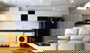 Experience luxury in the bathroom with marble tiles, a walk-in shower, and a rain shower head. The minimalist design offers built-in storage solutions for a clutter-free environment.