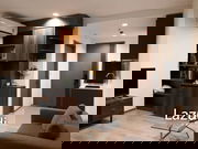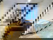 Spanning 32.5 sqm, this fully furnished one-bedroom unit features an open-plan layout that maximizes space and natural light. The modern kitchen is equipped with stainless steel appliances, wooden cabinets, and a black countertop, ideal for any culinary enthusiast.