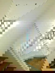 Spanning 49 sqm, this condo encapsulates modern minimalist design with its open-plan layout and bright, airy interiors. The fully furnished living area boasts elegant decor, including a white sofa and decorative pillows that complement the neutral color palette, while large windows ensure abundant natural light. Built-in shelving and tasteful wall art enhance the sophisticated ambiance.