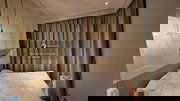 Both bedrooms offer large windows that promise stunning city views and are adorned with king-size beds and luxurious throws for a serene retreat. A built-in wardrobe offers ample space for your storage needs.