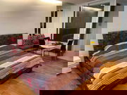 The living spaces shine with hardwood flooring, modern furnishings, floor-to-ceiling windows for abundant natural light, and a neutral color palette enhancing the units modern aesthetic. The open-plan kitchen, equipped with stainless steel appliances and white cabinetry, flows seamlessly into the living area, promoting an inviting atmosphere. Bedrooms are sanctuaries of relaxation, complete with city views, modern designs, and spacious layouts. Additionally, the property includes a well-lighted bathroom featuring a walk-in shower and contemporary fittings.