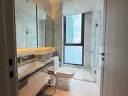 Unit Details : • Bright and airy living and dining area with high ceilings and full-height windows offering beautiful city views.• Spacious layout with elegant wooden floors and an open, relaxing atmosphere.• Modern kitchen with built-in cabinets, countertop, and electrical appliances.• Generous bedroom area for comfort and privacy.•Wide balcony perfect for fresh air and enjoying Bangkok’s skyline.