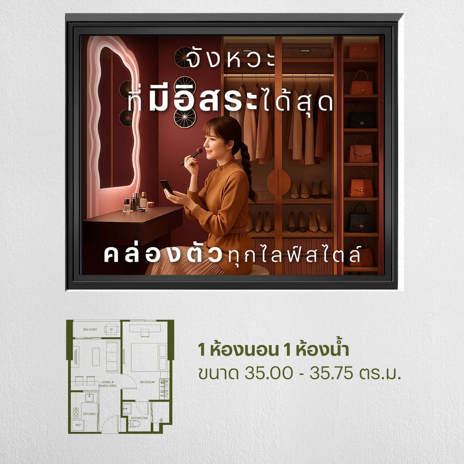 1–2 ห้องนอน ขนาด 26.75–58 ตร.ม.