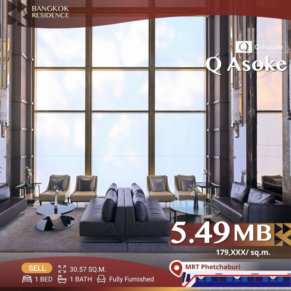 🔥Available unit🔥Q Asoke คอนโด High Rise เฟอร์ครบ ติด MRT เพชรบุรี1 ห้องนอน38.69m2ชั้น 11-20฿6,000,000UPDATE !