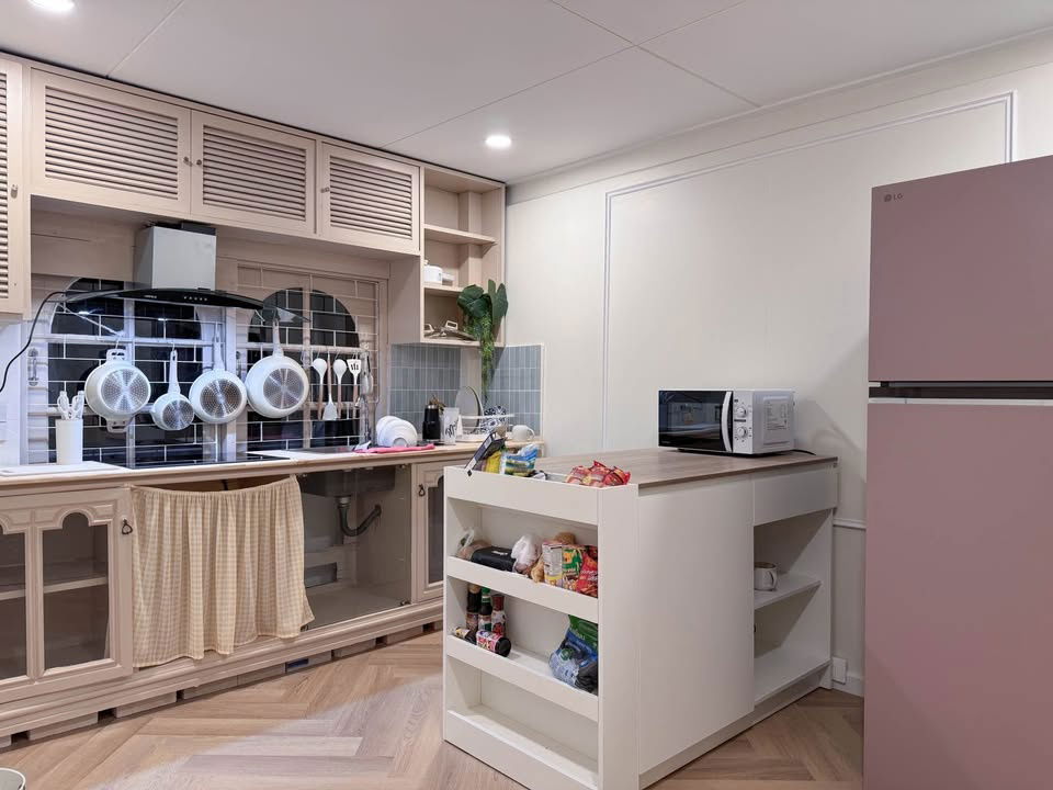 ห้องครัว: เตา, ตู้เย็น, ไมโครเวฟ ครบพร้อมใช้งาน