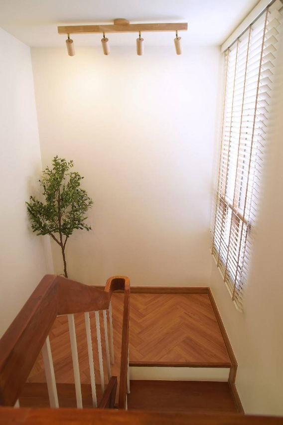 สไตล์มินิมอลสีขาว+กรอบหน้าต่างอลูมิเนียมลายไม้ กระจกหนา8มม. บนฝ้าบุฉนวนความร้อน SCG Stay Cool หนา6"