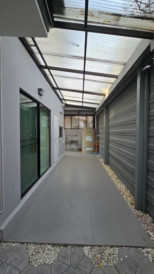 – หลังบ้านต่อเติมหลังคา รองรับการต่อครัว -ผ้าม่าน+มุ้งลวดหน้าต่าง