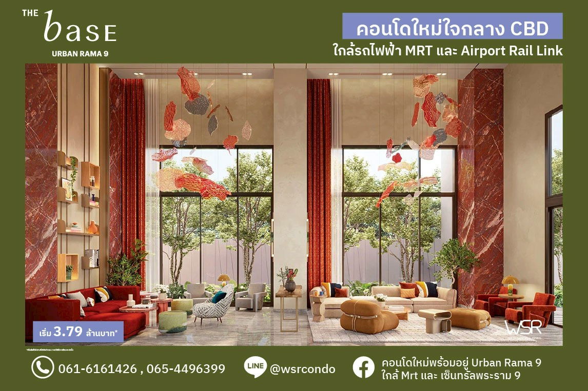 หรูหรา-ทำเลดี-ราคาดี๊ดี‼️ ✨The Base Urban Rama 9✨ เริ่มเพียง 3.79 ล้าน📞065-4496399 / LINE: @wsrcondo