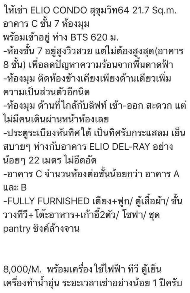 ประกาศอื่นๆในโครงการ Elio Sukhumvit 64